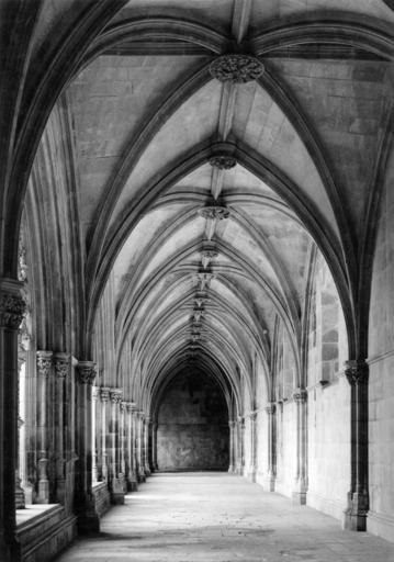 Keywords: arquitectura gótico portugal batalha mosteiro santa vitória mosteiro da batalha mosteirodabatalha fundação calouste gulbenkian fundaçãocaloustegulbenkian maria pia mariapia mário tavares chicó máriotavareschicó mário novais márionovais gótica biblioteca de arte bibliotecadearte Claustro real: galeria com abóbada. Fotógrafo: Mário Novais, 1899-1967. Orientador científico: Mário Tavares Chicó, 1905-1966. Data aproximada da produção da fotografia original: 1954. O Mosteiro da Batalha é o mais importante símbolo da Dinastia de Avis. Ele foi construído por iniciativa de D. João I, na sequência de um voto à Virgem, caso vencesse a Batalha de Aljubarrota (1385). Ao longo do século XV, praticamente todos os monarcas aqui deixaram a sua marca. O arranque das obras deu-se em 1388 e foi conduzido por Afonso Domingues, que se manteve à frente do estaleiro até 1402, ano em que faleceu. A ele se atribui o plano geral da construção e o grande avanço dos trabalhos na igreja e no claustro. Não terá tido tempo de executar a fachada principal nem o abobadamento do templo, deixando igualmente inacabado o claustro. A magnífica igreja de três naves e transepto saliente por si delineada, com cabeceira de cinco capelas, sendo a central de duplo tramo e terminação poligonal, terá sido o ponto alto da sua carreira, mas revela bem o nível ainda algo arcaizante da arquitectura portuguesa de finais do século XIV, alheia aos progressos do Gótico Flamejante, que tanto iria marcar a segunda fase do monumento. Com efeito, a partir de 1402, a chefia do estaleiro foi entregue a Huguet, arquitecto de provável origem catalã que inaugurou, entre nós, o tardo-gótico. Documentado à frente do projecto até 1438, a ele se deve o abobadamento dos espaços da igreja e da Sala do Capítulo (onde experimentou, pela primeira vez, uma abóbada estrelada), a construção da Capela do Fundador e, ainda, o início das obras das Capelas Imperfeitas, bem como a conclusão da fachada principal, onde sobressai o portal axial. Este, é delimitado por um arco canopial que integra os escudos de D. João I e de D. Filipa. No tímpano, exibe-se Cristo em Majestade ladeado pelos Evangelistas e as arquivoltas são repletas de figurações que continuam pelas estátuas-colunas, ao abrigo de um complexo programa iconográfico. Mas a mais emblemática obra de Huguet é a Capela do Fundador. Ela foi concebida para panteão régio e sabemos que já se encontrava em obras em 1426. É um compartimento quadrangular que se adossa aos três tramos ocidentais da fachada lateral Sul e integra, ao centro, um esquema octogonal de suportes onde descarrega a abóbada estrelada, solução primeiro experimentada em Inglaterra, mas rapidamente difundida pela Europa. No circuito interior desta capela, colocou-se o túmulo duplo de D. João I e de D. Filipa, realização igualmente sem antecedentes no nosso país e que resulta de uma nítida influência da tumulária inglesa. Na capela repousam também os filhos do casal régio (como D. Henrique e o regente D. Pedro), de acordo com a decisão testamentária de D. João I em fazer deste espaço um efectivo panteão. Em 1436, D. Duarte decidiu edificar uma capela funerária para si próprio. O projecto então concebido por Huguet foi o mais arrojado da sua carreira na Batalha, privilegiando uma planta circular que, todavia, não viria a ser concluída pelo falecimento do mestre dois anos depois. Desta forma, e não obstante a intervenção de Mestre Martim Vasques, a construção cessou até ao reinado de D. Manuel e, mesmo nessa altura, não foi concluída, razão de esta parcela ser conhecida como as Capelas Imperfeitas. No reinado de D. Afonso V, edificou-se o segundo claustro do mosteiro. Ele resulta da intervenção do arquitecto Fernão de Évora e, estilisticamente, é uma obra que contraria o tardo-gótico de raiz flamejante, tendo-se optado deliberadamente pela austeridade arquitectónica, que rejeita até a inclusão de capitéis a marcar o arranque dos arcos. A Batalha teve outras fases construtivas igualmente relevantes, como o Manuelino ou o Renascimento. Todavia, a mudança dinástica verificada com D. Manuel privilegiou outros locais e, só no século XIX, o Mosteiro voltou a ser intervencionado, desta vez com o objectivo de restaurar o conjunto, campanha que se prolongou por meio século. (Fonte: IPPAR - tinyurl.com/5dmlfe) [CFT015.183.ic] Claustro real: galeria com abóbada. Fotógrafo: Mário Novais, 1899-1967. Orientador científico: Mário Tavares Chicó, 1905-1966. Data aproximada da produção da fotografia original: 1954. O Mosteiro da Batalha é o mais importante símbolo da Dinastia de Avis. Ele foi construído por iniciativa de D. João I, na sequência de um voto à Virgem, caso vencesse a Batalha de Aljubarrota (1385). Ao longo do século XV, praticamente todos os monarcas aqui deixaram a sua marca. O arranque das obras deu-se em 1388 e foi conduzido por Afonso Domingues, que se manteve à frente do estaleiro até 1402, ano em que faleceu. A ele se atribui o plano geral da construção e o grande avanço dos trabalhos na igreja e no claustro. Não terá tido tempo de executar a fachada principal nem o abobadamento do templo, deixando igualmente inacabado o claustro. A magnífica igreja de três naves e transepto saliente por si delineada, com cabeceira de cinco capelas, sendo a central de duplo tramo e terminação poligonal, terá sido o ponto alto da sua carreira, mas revela bem o nível ainda algo arcaizante da arquitectura portuguesa de finais do século XIV, alheia aos progressos do Gótico Flamejante, que tanto iria marcar a segunda fase do monumento. Com efeito, a partir de 1402, a chefia do estaleiro foi entregue a Huguet, arquitecto de provável origem catalã que inaugurou, entre nós, o tardo-gótico. Documentado à frente do projecto até 1438, a ele se deve o abobadamento dos espaços da igreja e da Sala do Capítulo (onde 