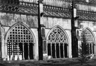 | Keywords: arquitectura gótico portugal batalha mosteiro santa vitória fundação calouste gulbenkian fundaçãocaloustegulbenkian maria pia mariapia mário tavares chicó máriotavareschicó mário novais márionovais gótica biblioteca de arte bibliotecadearte Claustro real: arcos quebrados. Fotógrafo: Mário Novais, 1899-1967. Orientador científico: Mário Tavares Chicó, 1905-1966. Data aproximada da produção da fotografia original: 1954. O Mosteiro da Batalha é o mais importante símbolo da Dinastia de Avis. Ele foi construído por iniciativa de D. João I, na sequência de um voto à Virgem, caso vencesse a Batalha de Aljubarrota (1385). Ao longo do século XV, praticamente todos os monarcas aqui deixaram a sua marca. O arranque das obras deu-se em 1388 e foi conduzido por Afonso Domingues, que se manteve à frente do estaleiro até 1402, ano em que faleceu. A ele se atribui o plano geral da construção e o grande avanço dos trabalhos na igreja e no claustro. Não terá tido tempo de executar a fachada principal nem o abobadamento do templo, deixando igualmente inacabado o claustro. A magnífica igreja de três naves e transepto saliente por si delineada, com cabeceira de cinco capelas, sendo a central de duplo tramo e terminação poligonal, terá sido o ponto alto da sua carreira, mas revela bem o nível ainda algo arcaizante da arquitectura portuguesa de finais do século XIV, alheia aos progressos do Gótico Flamejante, que tanto iria marcar a segunda fase do monumento. Com efeito, a partir de 1402, a chefia do estaleiro foi entregue a Huguet, arquitecto de provável origem catalã que inaugurou, entre nós, o tardo-gótico. Documentado à frente do projecto até 1438, a ele se deve o abobadamento dos espaços da igreja e da Sala do Capítulo (onde experimentou, pela primeira vez, uma abóbada estrelada), a construção da Capela do Fundador e, ainda, o início das obras das Capelas Imperfeitas, bem como a conclusão da fachada principal, onde sobressai o portal axial. Este, é delimitado por um arco canopial que integra os escudos de D. João I e de D. Filipa. No tímpano, exibe-se Cristo em Majestade ladeado pelos Evangelistas e as arquivoltas são repletas de figurações que continuam pelas estátuas-colunas, ao abrigo de um complexo programa iconográfico. Mas a mais emblemática obra de Huguet é a Capela do Fundador. Ela foi concebida para panteão régio e sabemos que já se encontrava em obras em 1426. É um compartimento quadrangular que se adossa aos três tramos ocidentais da fachada lateral Sul e integra, ao centro, um esquema octogonal de suportes onde descarrega a abóbada estrelada, solução primeiro experimentada em Inglaterra, mas rapidamente difundida pela Europa. No circuito interior desta capela, colocou-se o túmulo duplo de D. João I e de D. Filipa, realização igualmente sem antecedentes no nosso país e que resulta de uma nítida influência da tumulária inglesa. Na capela repousam também os filhos do casal régio (como D. Henrique e o regente D. Pedro), de acordo com a decisão testamentária de D. João I em fazer deste espaço um efectivo panteão. Em 1436, D. Duarte decidiu edificar uma capela funerária para si próprio. O projecto então concebido por Huguet foi o mais arrojado da sua carreira na Batalha, privilegiando uma planta circular que, todavia, não viria a ser concluída pelo falecimento do mestre dois anos depois. Desta forma, e não obstante a intervenção de Mestre Martim Vasques, a construção cessou até ao reinado de D. Manuel e, mesmo nessa altura, não foi concluída, razão de esta parcela ser conhecida como as Capelas Imperfeitas. No reinado de D. Afonso V, edificou-se o segundo claustro do mosteiro. Ele resulta da intervenção do arquitecto Fernão de Évora e, estilisticamente, é uma obra que contraria o tardo-gótico de raiz flamejante, tendo-se optado deliberadamente pela austeridade arquitectónica, que rejeita até a inclusão de capitéis a marcar o arranque dos arcos. A Batalha teve outras fases construtivas igualmente relevantes, como o Manuelino ou o Renascimento. Todavia, a mudança dinástica verificada com D. Manuel privilegiou outros locais e, só no século XIX, o Mosteiro voltou a ser intervencionado, desta vez com o objectivo de restaurar o conjunto, campanha que se prolongou por meio século. (Fonte: IPPAR - tinyurl.com/5dmlfe) [CFT015.179.ic] Claustro real: arcos quebrados. Fotógrafo: Mário Novais, 1899-1967. Orientador científico: Mário Tavares Chicó, 1905-1966. Data aproximada da produção da fotografia original: 1954. O Mosteiro da Batalha é o mais importante símbolo da Dinastia de Avis. Ele foi construído por iniciativa de D. João I, na sequência de um voto à Virgem, caso vencesse a Batalha de Aljubarrota (1385). Ao longo do século XV, praticamente todos os monarcas aqui deixaram a sua marca. O arranque das obras deu-se em 1388 e foi conduzido por Afonso Domingues, que se manteve à frente do estaleiro até 1402, ano em que faleceu. A ele se atribui o plano geral da construção e o grande avanço dos trabalhos na igreja e no claustro. Não terá tido tempo de executar a fachada principal nem o abobadamento do templo, deixando igualmente inacabado o claustro. A magnífica igreja de três naves e transepto saliente por si delineada, com cabeceira de cinco capelas, sendo a central de duplo tramo e terminação poligonal, terá sido o ponto alto da sua carreira, mas revela bem o nível ainda algo arcaizante da arquitectura portuguesa de finais do século XIV, alheia aos progressos do Gótico Flamejante, que tanto iria marcar a segunda fase do monumento. Com efeito, a partir de 1402, a chefia do estaleiro foi entregue a Huguet, arquitecto de provável origem catalã que inaugurou, entre nós, o tardo-gótico. Documentado à frente do projecto até 1438, a ele se deve o abobadamento dos espaços da igreja e da Sala do Capítulo (onde experimentou, pela primeira vez, uma abóbada 