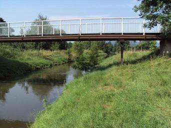 Keywords: Mostek u Dubické čistírny.jpg cs Mostek lávka pro pěší přes Ploučnici čtvrť Dubice v České Lípě own Zákupák 2010-07-22 50 40 47 733 N 14 31 38 269 E region CZ Bridges over the Ploučnice in Česká Lípa Footbridges in Česká Lípa District