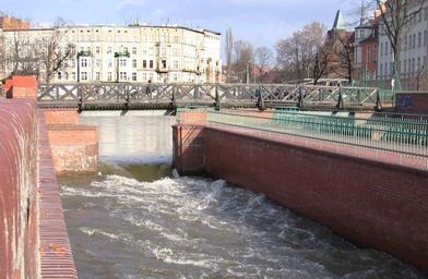 Keywords: MostSwKlary2006kwie6.jpg en Wrocław Poland St Clare Bridge Most św Klary view from Bielarska Island high water spring 2006 user Julo own spring 2006 Julo Św Klary Bridge