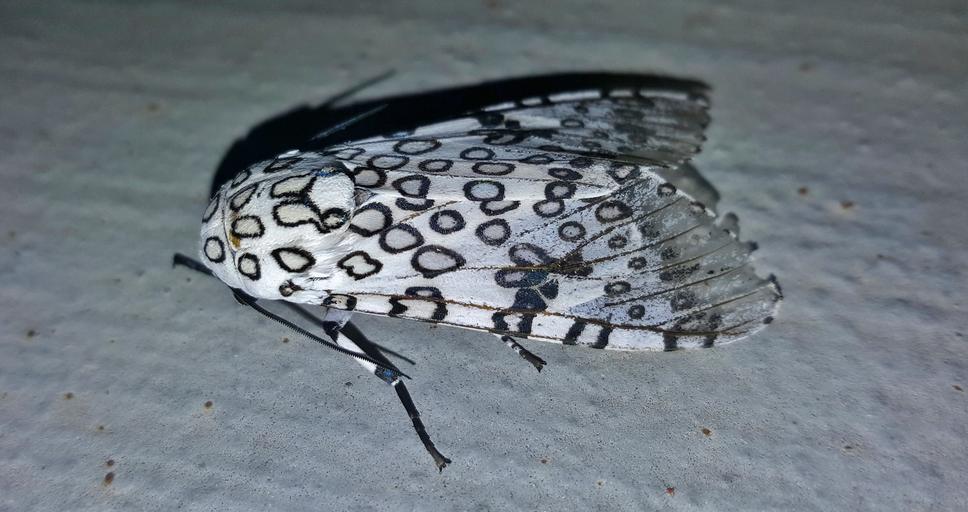 Keywords: moth giant leopard moth insect insectoid wings markings circles pattern patterned night nocturnal entomology close up nature biology creature species arthropod ecpantheria scribonia