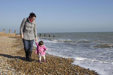Keywords: mother daughter child young kid infant offspring girl beach eastbourne sun little sea summer water sunshine mum family walking