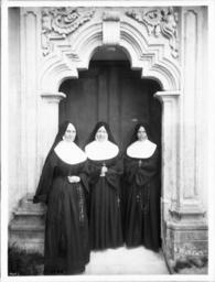 | Keywords: Mother Louis, Sister Superior, and two nuns at Mission San Carlos, Monterey, ca.1903 (CHS-4093).jpg en <br> Mother Louis Sister Superior and two nuns at Mission San Carlos Monterey ca 1903 Photograph of Mother Louis Sister Superior and two nuns at Mission San Carlos Monterey ca 1899 They are all wearing habits Mother Louis has round spectacles left Her left hand fingers a cross hanging on a cord around her neck The two other sisters hold their hands clasped in front of them and also have crosses hanging around their necks They all stand in a stone carved entryway the side entrance outside Call number CHS-4093 Photographer James George Wharton Filename CHS-4093 Coverage date circa 1899 Part of collection California Historical Society Collection 1860-1960 Format glass plate negatives Type images Geographic subject city or populated place Carmel Repository name USC Libraries Special Collections Accession number 4093 Microfiche number 1-126-8 Archival file chs_Volume96/CHS-4093 tiff Part of subcollection Title Insurance and Trust and C C Pierce Photography Collection 1860-1960 Repository address Doheny Memorial Library Los Angeles CA 90089-0189 Geographic subject country USA Format aacr2 1 photograph glass photonegative b w ; 22 x 17 cm Rights Digitally reproduced by the USC Digital Library; From the California Historical Society Collection at the University of Southern California Subject adlf religious facilities Repository email specol usc edu Contributing entity California Historical Society Date created circa 1899 Publisher of the digital version University of Southern California Libraries Format aat photographs Geographic subject state California Legacy record ID chs-m16599 Access conditions Send requests to address or e-mail given Phone 213 821-2366; fax 213 740-2343 Geographic subject county Monterey Subject lcsh Missions Spanish; Nuns Subject Carmel Mission; Missions -- Mission Carmel San Carlos Borromeo de Carmelo ; Mission San Carlos; Mission San Carlos Monterey circa 1899 date created James George Wharton http //digitallibrary usc edu/cdm/ref/collection/p15799coll65/id/16528 PD-old-70-1923 Images from USC Digital Library uploaded by Fæ California Historical Society Collection 1860-1960 Glass plate negatives Photographs by George Wharton James Mission San Carlos Borromeo de Carmelo |
