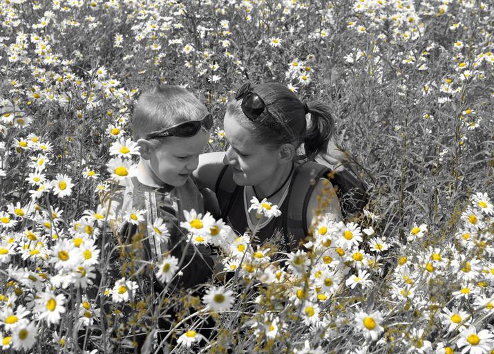 Keywords: mother son wife child kid family love people season spring summer flowers flower yellow fragrance beauty joy faith background black white