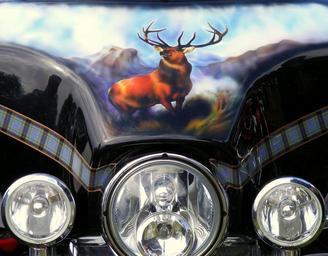 Keywords: motorbike transport lamps lights stag motif motorcycle vehicle black chrome reflections