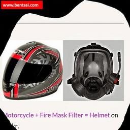 Research: I Googled online using different keywords e.g. Motorcycle helmet + Fire Mask Filters. There are images of motorcyclists wearing the typical helmets and a separate disposable mask/filter (white). There was none on a helmet with top quality filter that can filter out 99.99% of the contaminants.