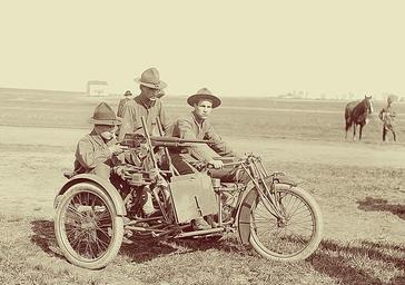 Keywords: motorcycle soldiers scouts indian motorcycle armed machine gun vintage