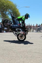 Keywords: motorcycle stunt jump motocross freestyle fmx judges male helmet rider motorcyclist reverse wheelie
