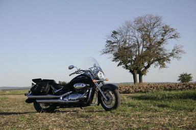 Keywords: motorcycle suzuki bike black new shiny parked vehicle transportation motorbike intruder
