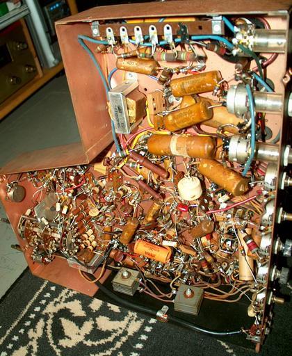 | Keywords: Motorolagoldenviewchassis.jpg en View of the underside of a chassis of a 1948 Motorola VT-71 Golden View 7 television set Own Westernelectric555 2003-01-10 Point-to-point construction Disassembled electronic devices CRT television sets Motorola 1948 productions |