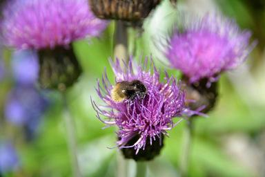 Keywords: mountain bumblebee thistle blossom bloom close pollen