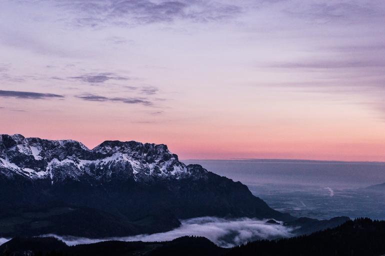 Keywords: mountain fog landscape fog bank sunrise mood morgenstimmung morning light morning mist skies