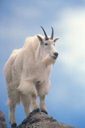 Keywords: Adult Mountain Goat standing on Crag in the Olympic National Forest sky animal washington unitedstates wildlife crag usforestservice olympicnationalforest mountiangoat olympicnf