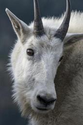 Keywords: mountain goat portrait head face wildlife nature looking white fur outdoors wild alpine horns animal close up