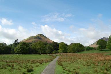 Keywords: mountain green scenic nature mountains vista clouds blue field fields