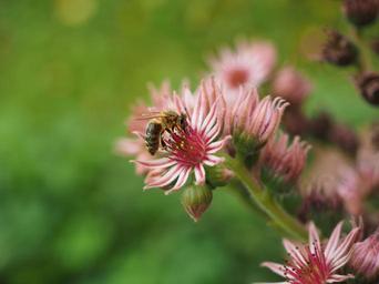 Keywords: mountain houseleek sempervivum blossom bloom pink macro plant flower pistil pollen close blossoms close up bud stone crop succulent agavengewächs incomplete green nature ground cover sempervivum montanum houseleek