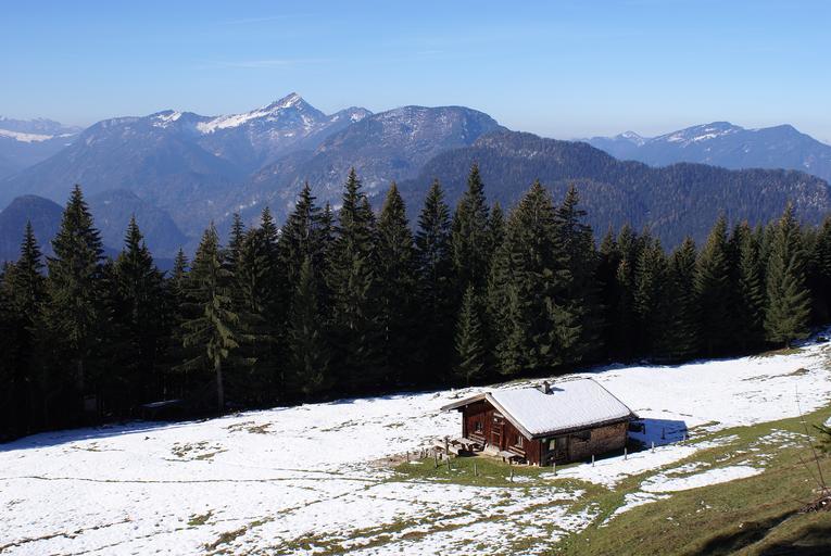 Keywords: mountain hut predigtstuhl alpine snow mountains forest