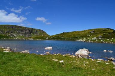 Keywords: mountain lake green sky sunny outdoor nature water