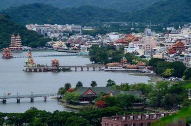 Keywords: mountain lake landscape building bridge left 營 蓮 chi tan dragon tiger pagodas
