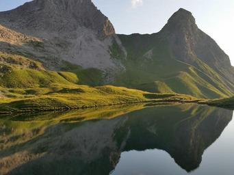 Keywords: mountain lake sunshine scenery landscape sunny water highlands majestic reflection tranquil calm quiet beautiful landscape spectacular