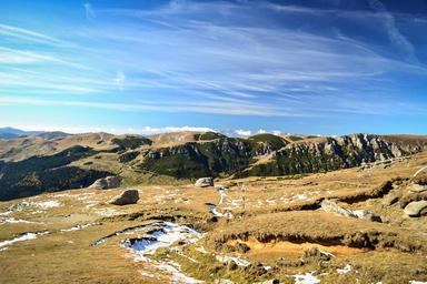 Keywords: mountain landscape romania travel sky nature rock natural mountain landscape outdoor adventure sunny clouds