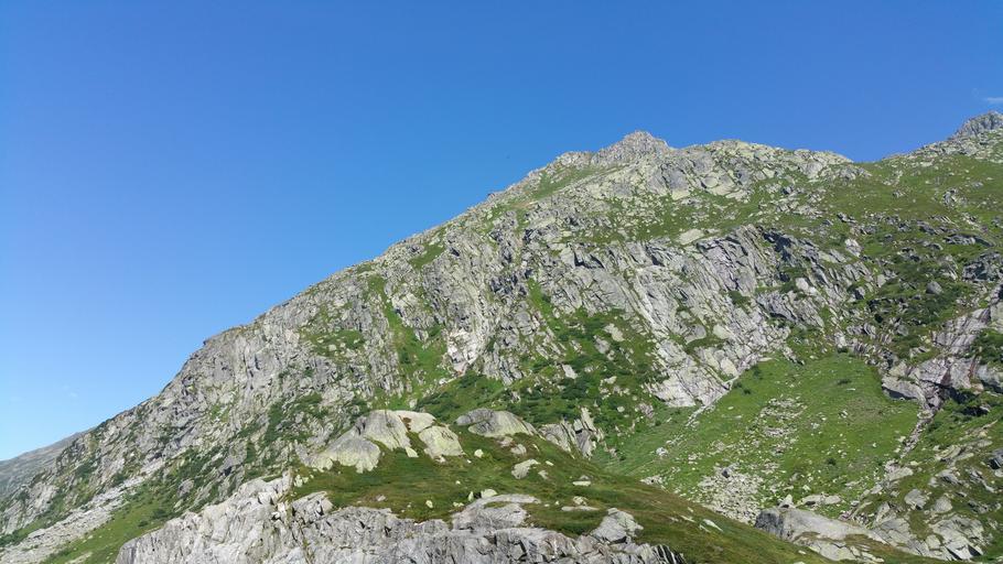 Keywords: mountain nature landscape clear sky blue green mountain peak sky natural stones summit rest rock lighting switzerland mood beautiful holiday travel
