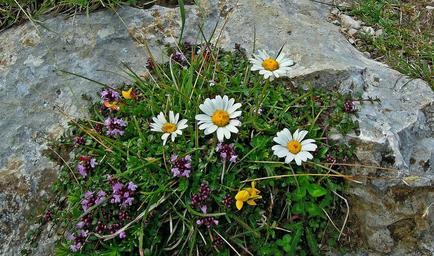 Keywords: mountain plant flowers composites daisy little daisy multiannual daisy m p harbinger of spring medicinal plant blossom bloom white roadside stone