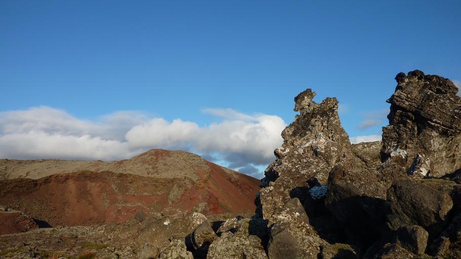Keywords: mountain rock sky clouds red iceland