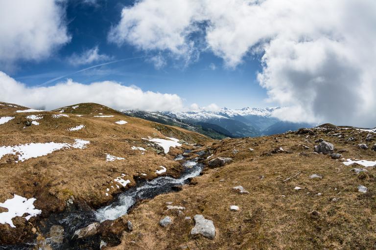 Keywords: mountain stream spring clouds mountain snow blue white green alpes climbing nature outdoor hiking peak landscape trekking altitude freedom adventure journey high water