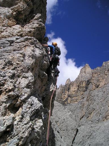 Keywords: mountaineer alpine climbing bergsport climb extreme sports steep high dangerous climber piz ciavazes hiking alpine mountains italy dolomites rock top upward rise