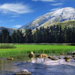 Keywords: mountains hill nature morning landscape grass tree green the purity of the vegetation holidays autumn forest the silence lake peace of mind view tourism sunny blue sky the sun holiday water clouds