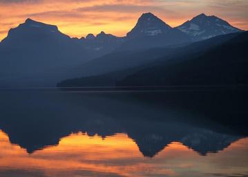 Keywords: mountains lake reflection twilight sunset landscape scenery sky colorful sunny tranquil