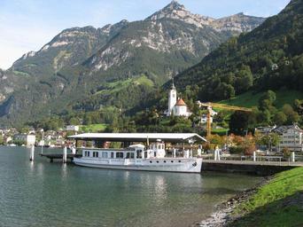 Keywords: mountains lake ship church switzerland alpine bergdorf nature farmhouses scenic rest rural landscape