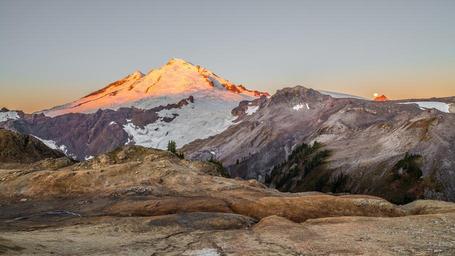 Keywords: mountains landscape moon nature peak scenic moonset scenery outdoors range mt baker snoqualmie national forest washington usa cascades snow colorful
