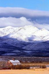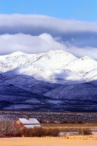 Keywords: mountains landscape scenic ranch sky nature view clouds agriculture rural snow sunlight shadows barn grass outdoors