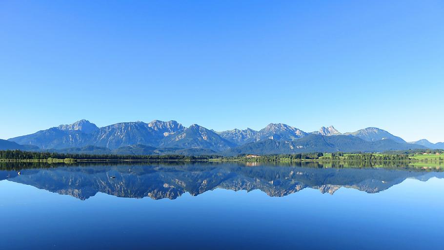 Keywords: mountains mirroring water lake landscape water surface reflection blue