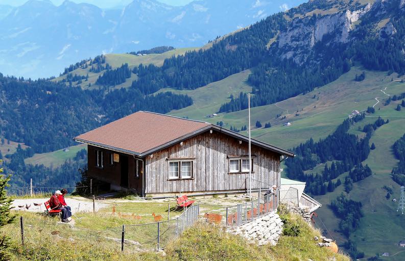 Keywords: mountains mountain hut view tourists romantic swiss alps ebenalp appenzell switzerland
