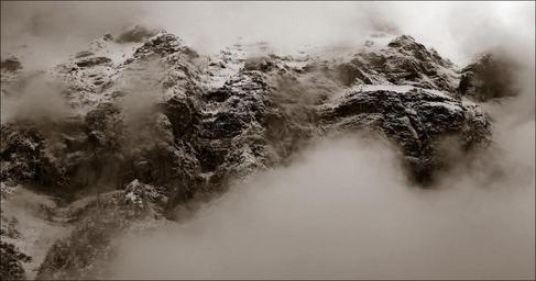 Keywords: mountains mountain switzerland alpine snow fog winter cold scene forward frost forest air clouds cloudiness cloudy dramatic weather black and white light black and white photo trees tree landscape nature