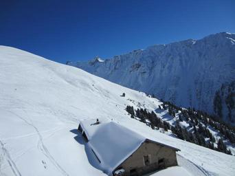Keywords: mountains snow winter landscape house