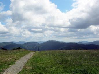 Keywords: mountains vosges balloon away wide horizon sky clouds path trail