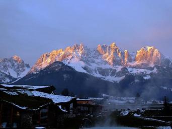 Keywords: mountains wilderkaiser alpine kaiser mountains ellmauer halt alpenglühen going summit winter