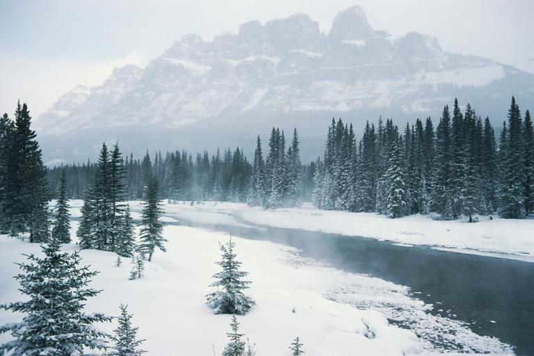 Keywords: mountains winter white season trees river scenery