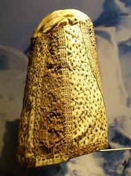 | Keywords: Mourning hat, East Greenland, leather with paint, No. 1883.10.0013 - Etnografiska museet - Stockholm, Sweden - DSC01271.JPG en Exhibit in the Etnografiska museet Stockholm Sweden This work is old enough so that it is in the public domain Photography was permitted in the museum without restriction 2014-09-16 own Daderot other versions cc-zero Arctic collection in the Etnografiska museet Uploaded with UploadWizard Leather clothing | ||||