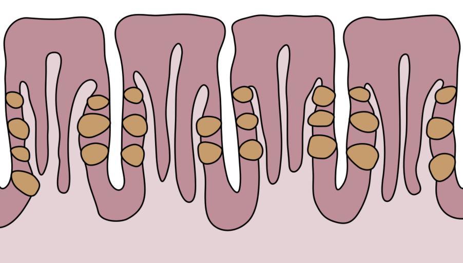 | Keywords: Mouse foliate papillae.svg en Schematic drawing of murine foliate papillae located on the tongue Taste buds are indicated in brown de Schematische Zeichnung von Blätterpapillen der Zunge der Maus Geschmacksknospen sind in braun dargestellt 2014-01-07 09 59 07 own Jonas Töle email how this file has been used Email cc-zero Uploaded with UploadWizard Gustatory system Epithelium Histological schematic | ||||