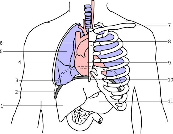 Keywords: Mouvement diaphragme respiration.svg fr Mouvement du diaphragme lors de la respiration humaine Foie Diaphragme à l'inspiration Diaphragme à l'expiration Cavité pleurale Poumon Aorte Clavicule Sternum Cœur Os xiphoïde Estomac en Movement of the diaphragm during human respiration Liver Diaphragm at inspiration Diaphragm at expiration Pleural 'space' Lung Aorta Clavicle Sternum Heart Xiphoid Stomach 2013-05-07 10 17 39 own design from Battlefield Advanced Trauma Life Support BATLS Chapter 7 Abdominal injuries Journal of Royal Army Medical Corps 2002; 148 50 picture redrawn from File Rib cage gif File Heart-and-lungs jpg File Thoracic landmarks anterior view svg Cdang principe heimlich face svg inkscape cdang cc-zero Uploaded with UploadWizard Thoracic diaphragm Respiratory system Anatomy of the human torso |