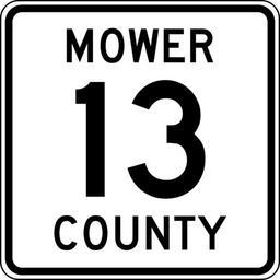 Keywords: Mower County Route 13 MN.svg County Route marker for Minnesota Own 2010-10-22 Fredddie Diagrams of Minnesota county route markers 0013 Diagrams of county route markers with county name 0013 13 number