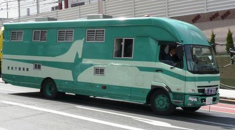 Keywords: MPD-Baunsha.jpg 警視庁騎馬隊の馬運車 own Photo by me 2008-03-23 Ypy31 Fuso Fighter Trucks of the Tokyo Metropolitan Police Department Green and white police vehicles Horse transport police trucks