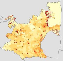 | Keywords: Mpumalanga 2011 population density map.svg ffffcc <1 inhabitant/km² ffeda0 1 “3 inhabitants/km² fed976 3 “10 inhabitants/km² feb24c 10 “30 inhabitants/km² fd8d3c 30 “100 inhabitants/km² fc4e2a 100 “300 inhabitants/km² e31a1c 300 “1000 inhabitants/km² bc0026 1000 “3000 inhabitants/km² 800026 >3000 inhabitants/km² Projection is Albers Equal-Area Conic with standard parallels at 25 5° S and 31 5° S and origin at 28 5° S 25 5° E Statistics South Africa's Census 2011 is the source of the basic population data The map results from my own processing of the data Htonl 2013-10-22 http //beta2 statssa gov za/ page_id 425 The following license applies to the population data on which the map is based the user acknowledges Stats SA as the source of the basic data wherever they process apply utilise publish or distribute the data and also that they specify that the relevant application and analysis where applicable result from their own processing of the data The following tag applies to the map itself Demographic maps of South Africa Maps of Mpumalanga |