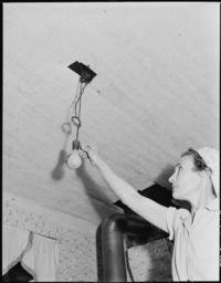 | Keywords: Mrs. Blaine Sergent turns on the kitchen light. They pay $2.30 monthly for electriciy which they use for four drops... - NARA - 541330.jpg Scope and content General notes 541330 Local identifier 245-MS-2604L Department of the Interior Solid Fuels Administration For War 04/19/1943 - 06/30/1947 NARA-Author Lee Russell 1903-1986 Photographer 2489414 <br /> Still Picture Records Section Special Media Archives Services Division NWCS-S National Archives at College Park 8601 Adelphi Road College Park MD 20740-6001 1946-09-14 Record group Record Group 245 Records of the Solid Fuels Administration for War 1937 - 1948 Record group ARC 572 Photographs of the Medical Survey of the Bituminous Coal Industry compiled 1946 - 1947 Series ARC 540230 File unit File unit ARC Variant control numbers NAIL Control Number NWDNS-245-MS-2604L Other versions <gallery> File Mrs _Blaine_Sergent_turns_on_the_kitchen_light _They_pay_ 2 30_monthly_for_electriciy_which_they_use_for_four_drops _-_NARA_-_541330 tif tif File Mrs _Blaine_Sergent_turns_on_the_kitchen_light _They_pay_ 2 30_monthly_for_electriciy_which_they_use_for_four_drops _-_NARA_-_541330 jpg jpg </gallery> NARA-cooperation PD-USGov Ceiling light fixtures in the United States 1946 Coal mining in the United States |