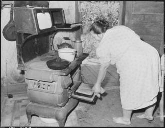 | Keywords: Mrs. Gillie Treadway, wife of a miner, taking freshly baked bread from oven. The Treadways have lived in this camp... - NARA - 541161.jpg Scope and content General notes 541161 Local identifier 245-MS-2177L Department of the Interior Solid Fuels Administration For War 04/19/1943 - 06/30/1947 NARA-Author Lee Russell 1903-1986 Photographer 2489414 <br /> Still Picture Records Section Special Media Archives Services Division NWCS-S National Archives at College Park 8601 Adelphi Road College Park MD 20740-6001 1946-08-31 Record group Record Group 245 Records of the Solid Fuels Administration for War 1937 - 1948 Record group ARC 572 Photographs of the Medical Survey of the Bituminous Coal Industry compiled 1946 - 1947 Series ARC 540230 File unit File unit ARC Variant control numbers NAIL Control Number NWDNS-245-MS-2177L Other versions <gallery> File Mrs _Gillie_Treadway _wife_of_a_miner _taking_freshly_baked_bread_from_oven _The_Treadways_have_lived_in_this_camp _-_NARA_-_541161 tif tif File Mrs _Gillie_Treadway _wife_of_a_miner _taking_freshly_baked_bread_from_oven _The_Treadways_have_lived_in_this_camp _-_NARA_-_541161 jpg jpg </gallery> NARA-cooperation PD-USGov Coal mining in the United States Housewives |